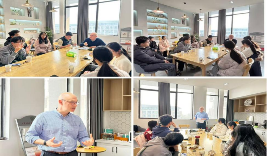 12月10日下午两点,咖啡英语口语角成功举办以“What are you curious about?”为主题的特别交流活动。外教Russell受邀担任主讲人,他紧扣“兴趣探索与个人成长”核心,精心设计互动环节,主持了一场轻松开放的全英文对话活动。(图为 Russell开场白)活动现场,来自不同年级、不同专业的学生们踊跃参与,纷纷围绕日常生活中的新奇发现、学业发展中的困惑与目标、未来职业的憧憬蓝图,以及时下热议的社会现象等多元话题,展开自由而热烈的英语交流。Russell全程以风趣的引导和针对性的互动提问,鼓励学生们突破语言表达局限,放下心理包袱,真诚分享彼此的观点与思考,现场欢声笑语不断,交流氛围十分热烈。(图为师生交流)此次活动不仅为学生们搭建了宝贵的沉浸式语言实践平台,有效提升了大家的英语口语表达能力,更有助于培养其批判性思维与跨文化沟通能力。活动营造了积极融洽的交流氛围,充分激发了青年学子主动探索、乐于交流的学习热情,成为我校校园国际文化氛围建设的又一次生动实践。
